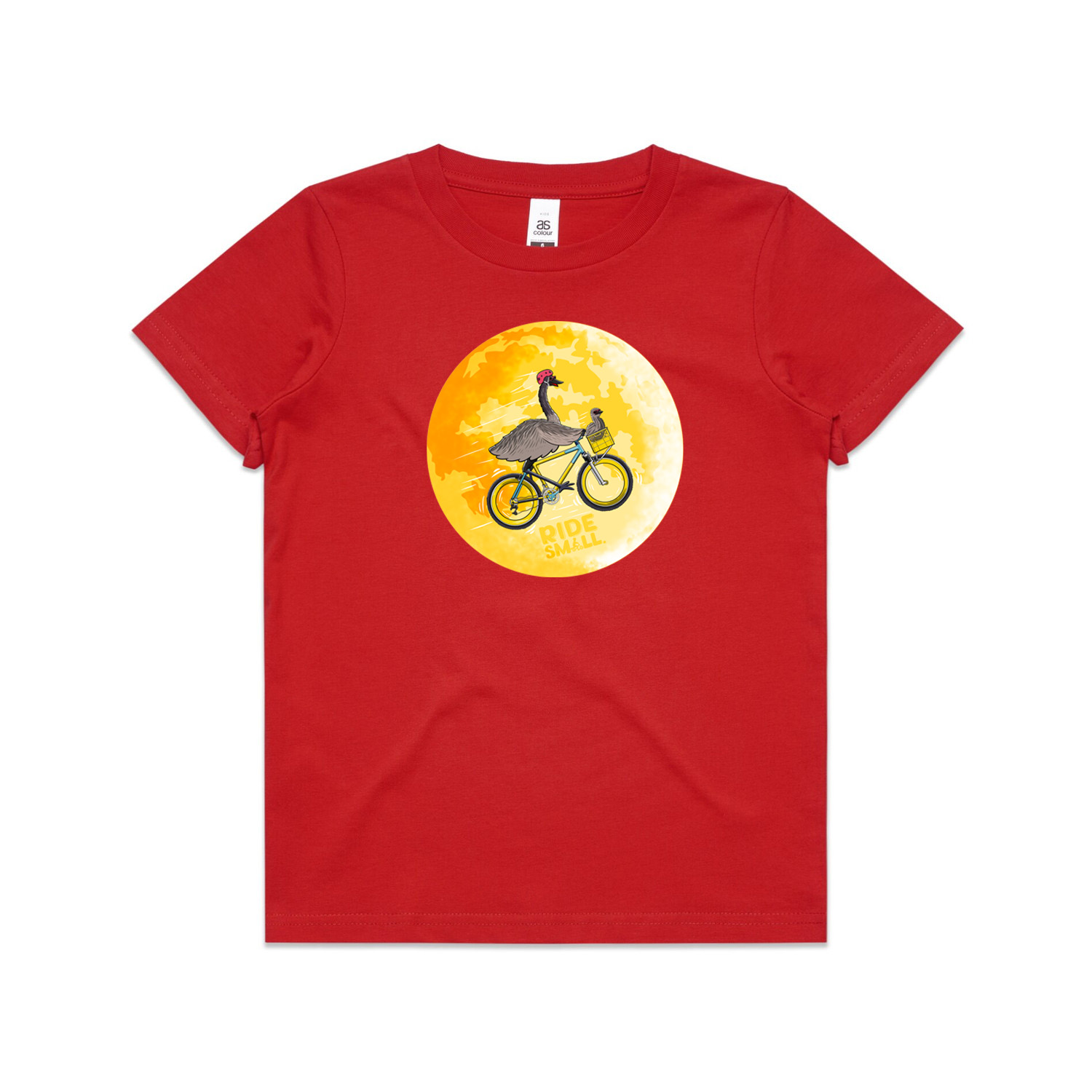 Edna the Emu flew as high as she could, but unfortunately it wasn’t very good. So she got out one day and a bike came her way, baby emu Swoon jumped in the front and together they flew right past the moon.